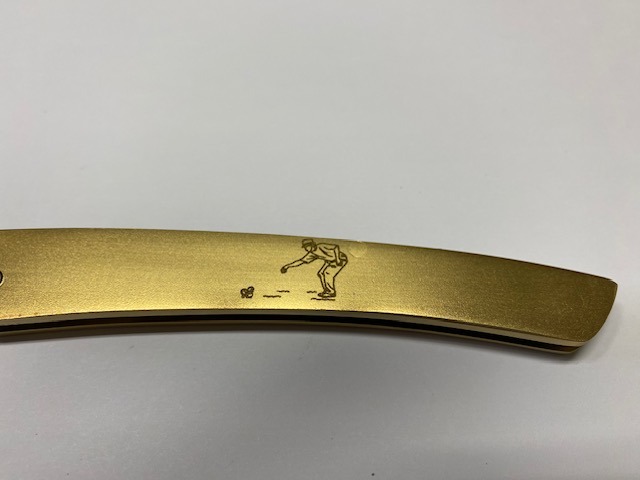 Manches : laiton satiné uni épaisseur 2,5 mm avec un gravure de joueur de pétanque.